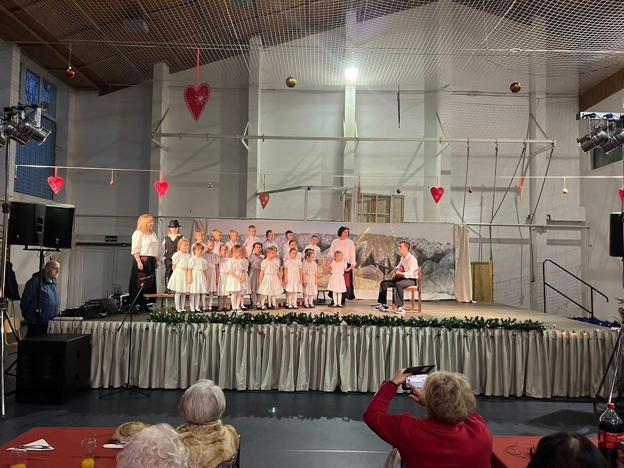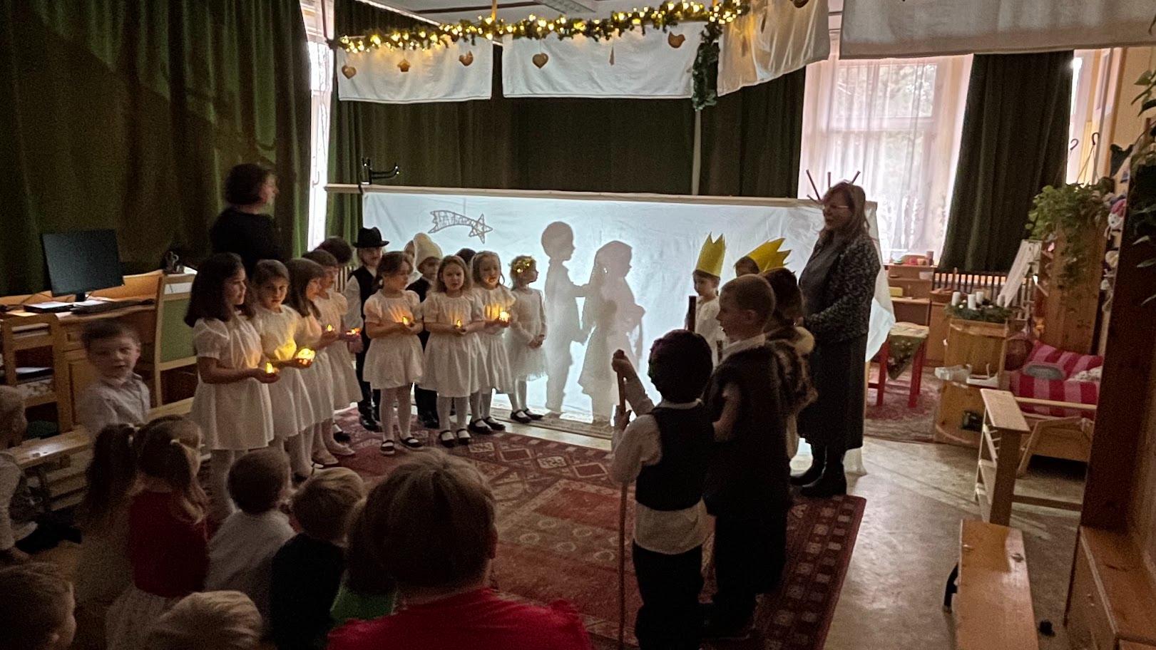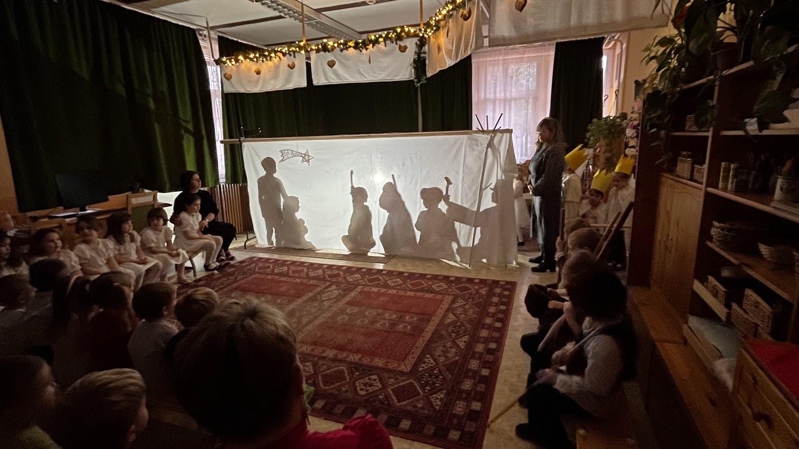 A hónap egyik legmeghittebb eseménye a hagyományőrző betlehemes játék volt, amely fényjátékkal valósult meg. A gyerekek átvilágított vászon mögött mozgással, mozdulatokkal idézték fel a betlehemi történetet. A zene, az árnyak, a fények különlegessé tették az előadást. Ezzel a műsorral ellátogattunk a csopaki Nyugdíjas Klubba, ahol karácsonyi hangulatot varázsoltunk. Az Idősek Karácsonya alkalmából óvodásaink versekkel és dalokkal készültek, az előadást gitárkíséret tette még bensőségesebbé. Örömmel látogattunk el karácsonyi köszöntőnkkel a Csopaki Polgármesteri Hivatalba is.